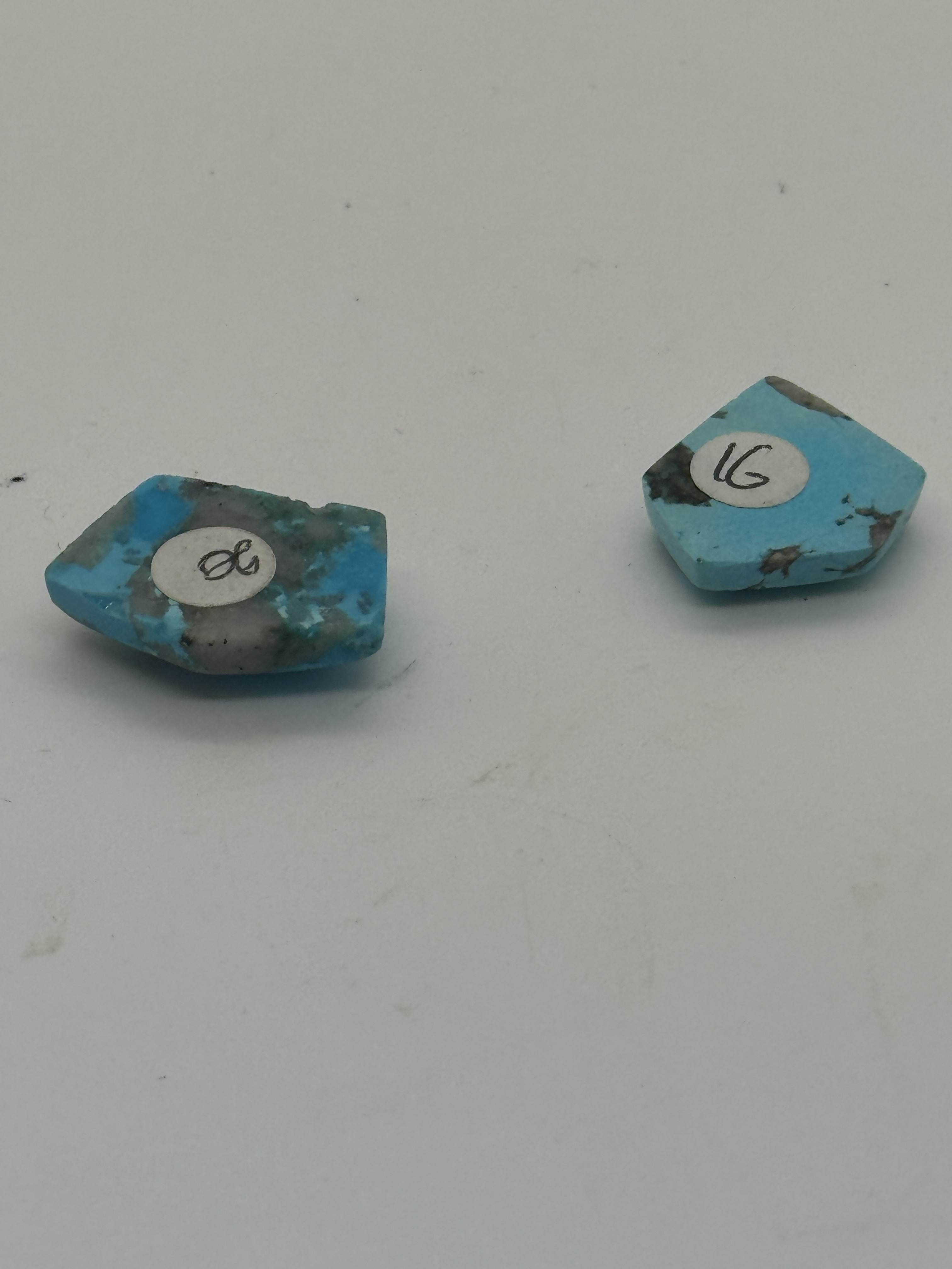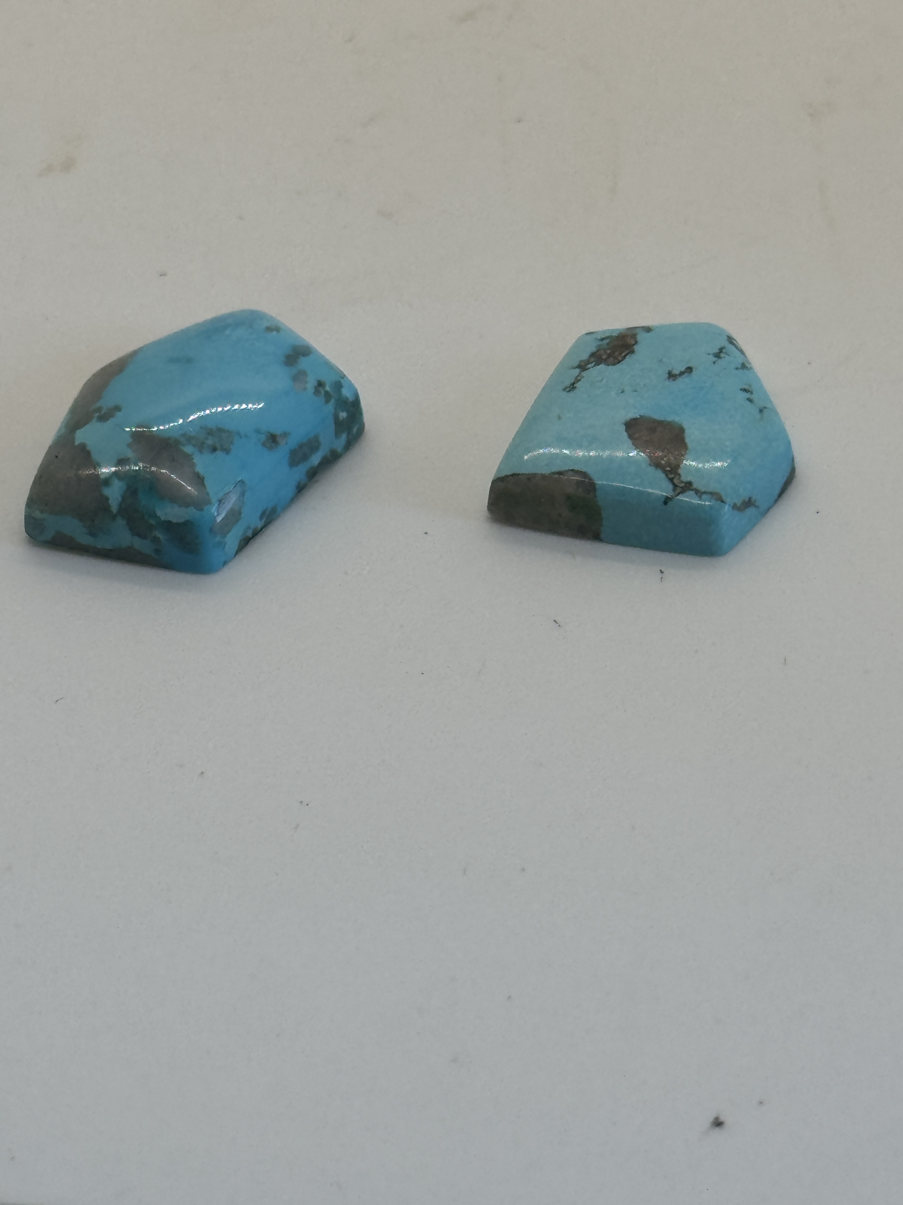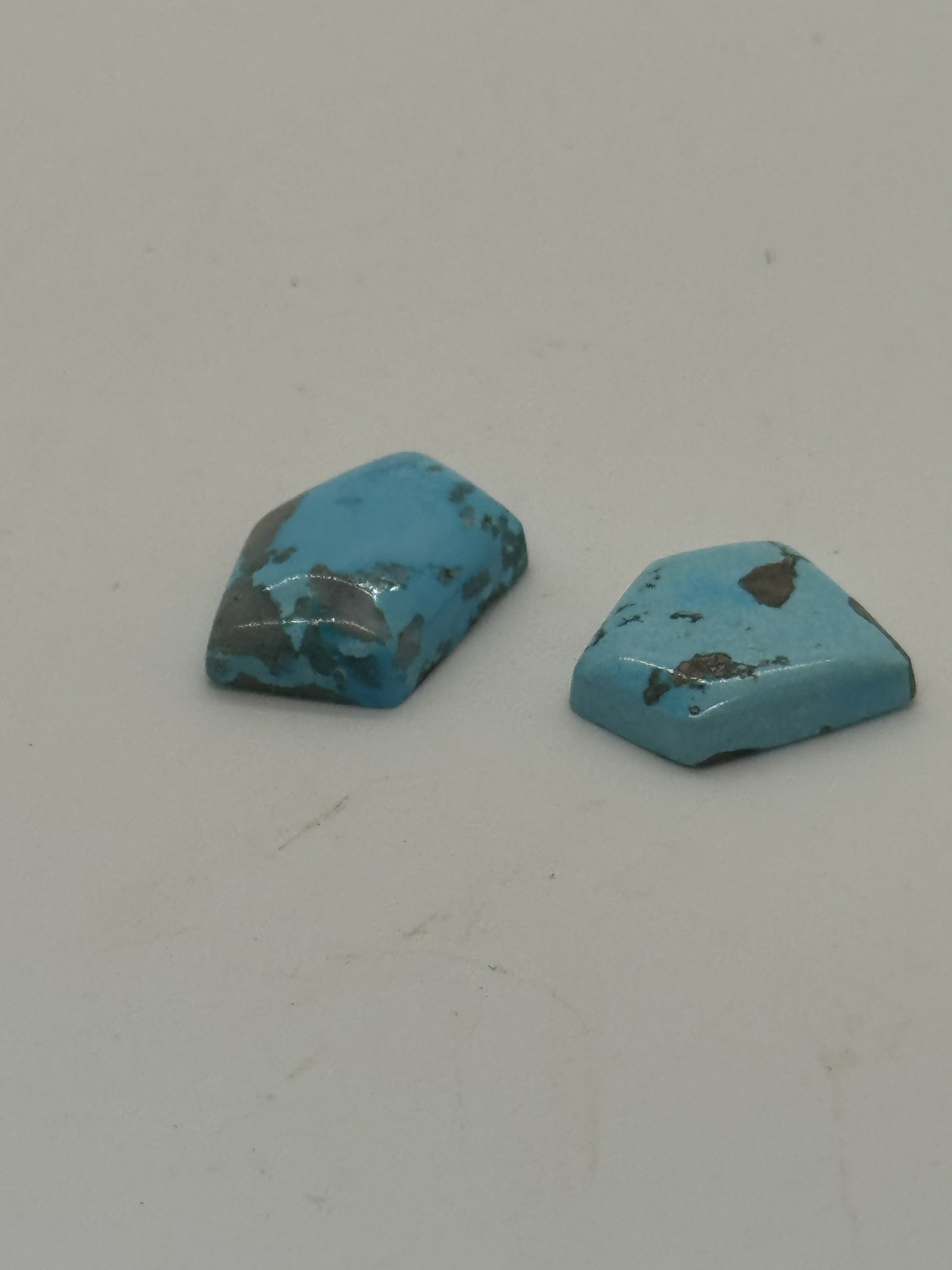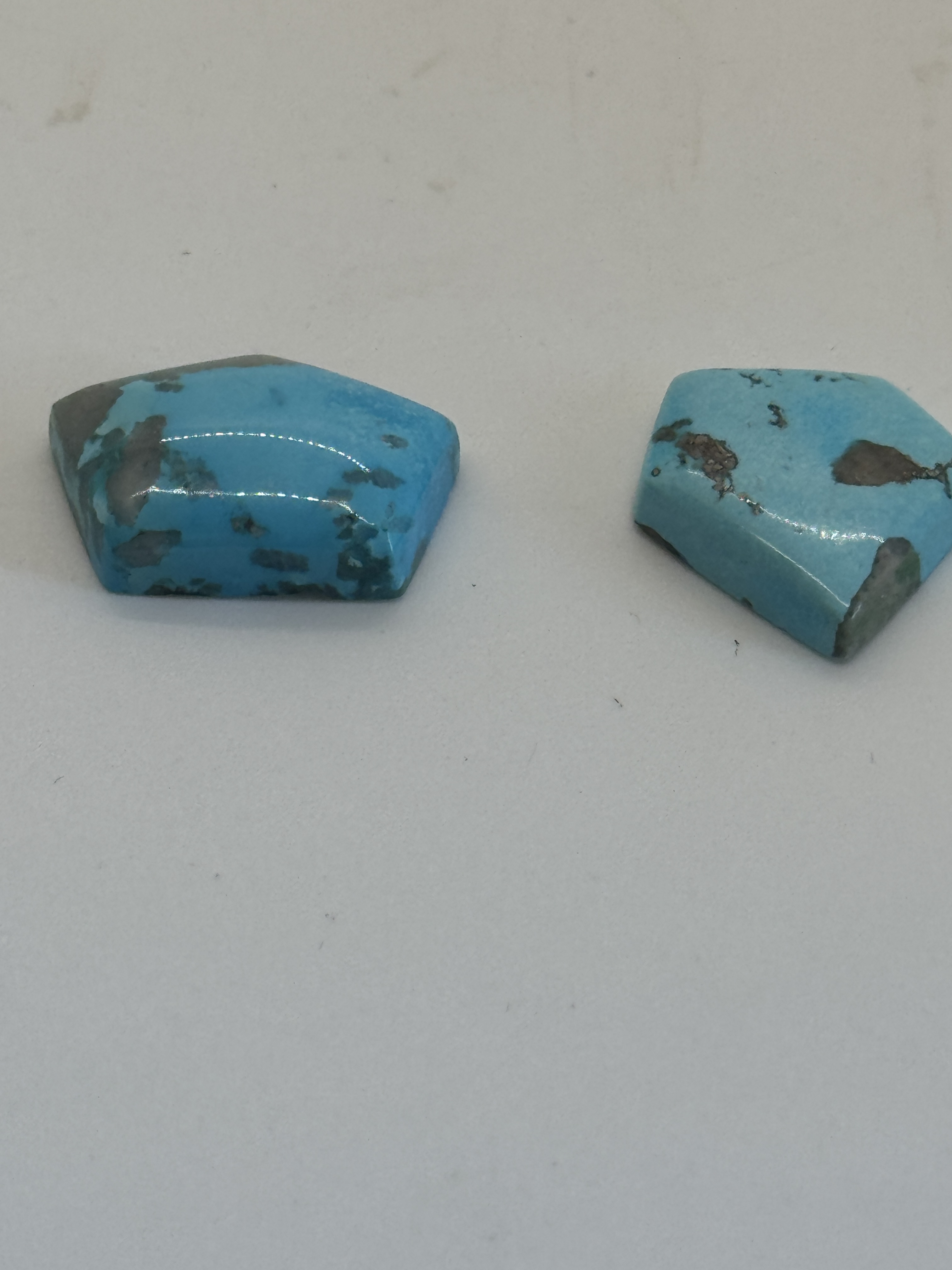 Gorgeous rare Blue Gem Turquoise cabochons. The Blue Gem Turquoise Mine near Battle Mountain Nevada is famous for producing some of the worlds finest vibrant blue turquoise with a unique matrix. The mine is largely exhausted making it highly collectible. Opened in 1934 as Battle Mountain Mine, mining ceased in the 1970’s with it’s valuable turquoise found mostly in private collections. (2) cabochons. One L 7/8″ x 5/8″ W and the other L 3/4″ x 3/4″ W. 36 carats.